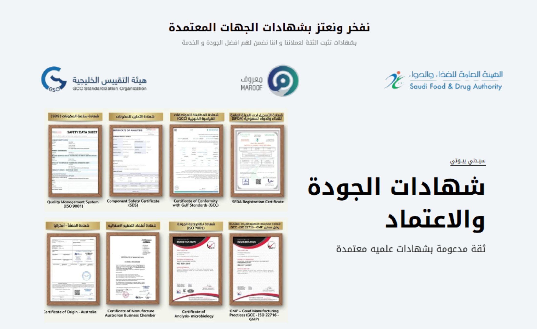 الشهادات ومعايير الجودة التى تلتزم بيها سيدني بيوتي
